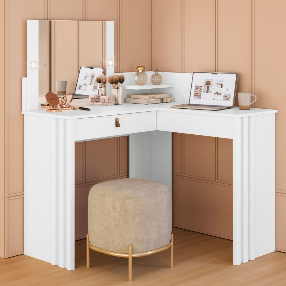 | Itens Inclusos | Penteadeira Camarim Ripada com Espelho e LED 1 Gaveta Glow Albatroz |