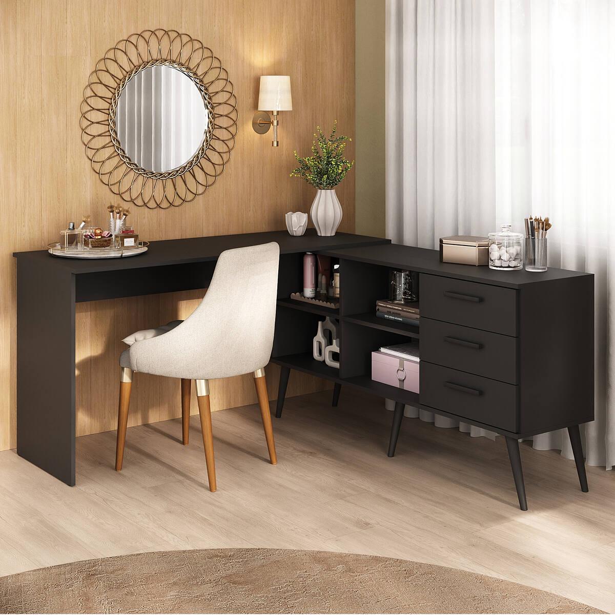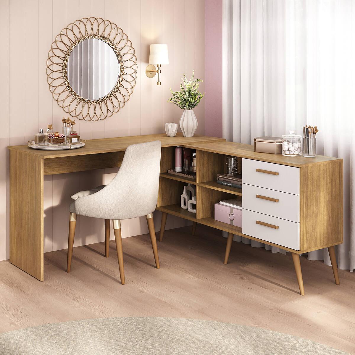 Penteadeira Escrivaninha De Canto Com 3 Gavetas Jady Multimóveis Mp4782
