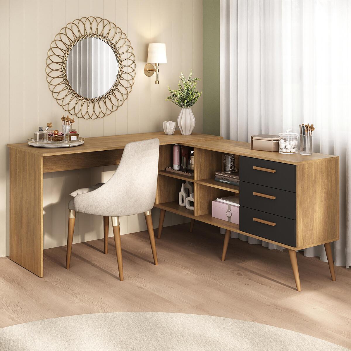 A Penteadeira Escrivaninha De Canto Com 3 Gavetas Jady Multimóveis Mp4782 é perfeita para quem deseja unir beleza, organização e funcionalidade em um só móvel. Versátil e charmosa, ela se adapta ao seu espaço e à sua rotina, criando o ambiente ideal para se arrumar, estudar ou trabalhar com conforto, praticidade e muito estilo.