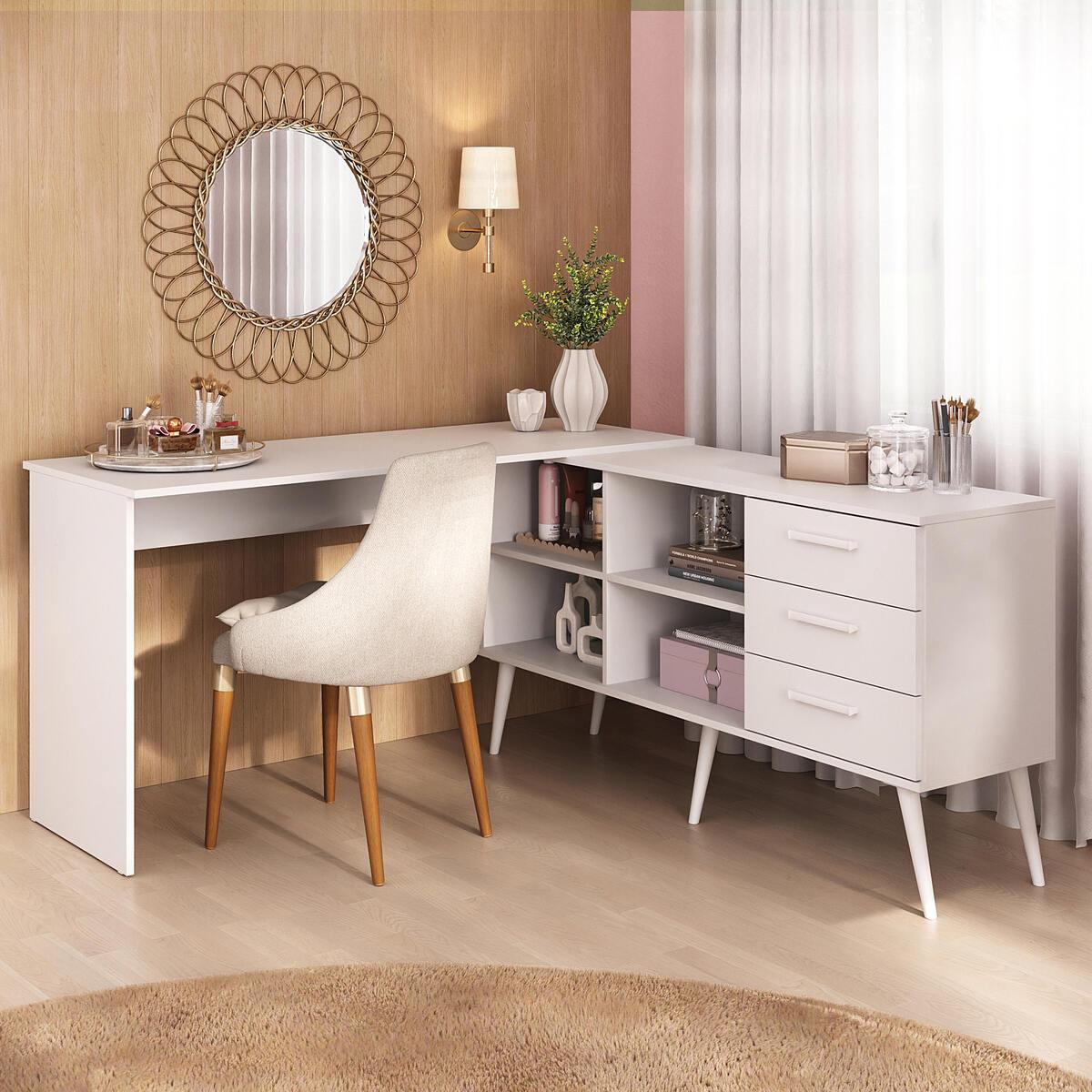 A Penteadeira Escrivaninha De Canto Com 3 Gavetas Jady Multimóveis Mp4782 é perfeita para quem deseja unir beleza, organização e funcionalidade em um só móvel. Versátil e charmosa, ela se adapta ao seu espaço e à sua rotina, criando o ambiente ideal para se arrumar, estudar ou trabalhar com conforto, praticidade e muito estilo.