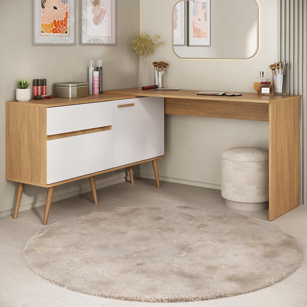 Penteadeira Escrivaninha De Canto 2 Portas 1 Gaveta Sublime Multimóveis Mp4791 Branco