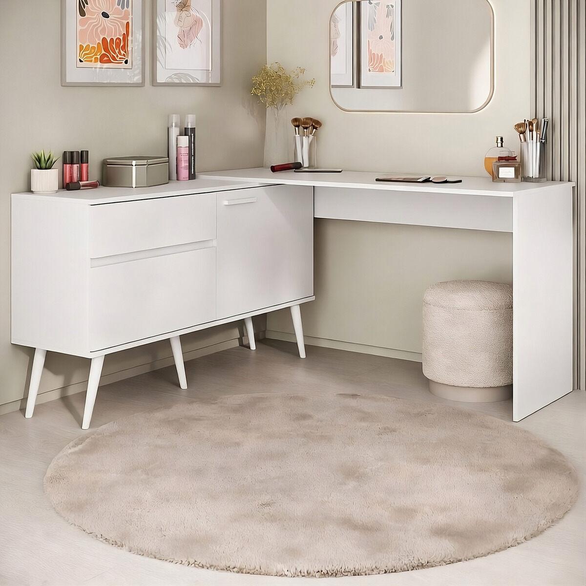 Penteadeira Escrivaninha De Canto 2 Portas 1 Gaveta Sublime Multimóveis Mp4791 Madeirado/Branco