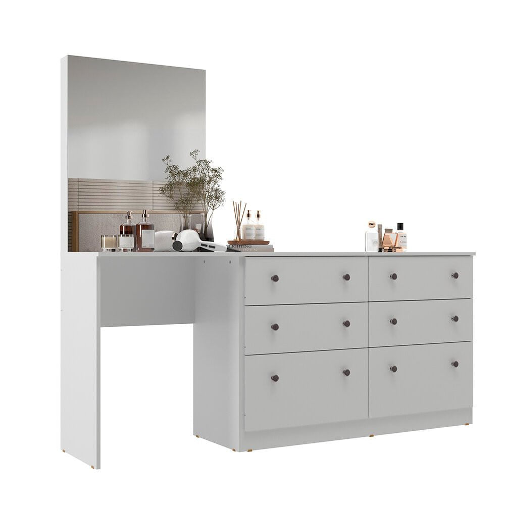 Com a Penteadeira Maitê Móveis Sul - 5527, seu quarto ficará ainda mais bonito. Feito em Mdp Ff , com revestimento em pintura Uv , o produto possui muita durabilidade e resistência. Suas 06 gavetas são ideais para você guardar suas roupas e/ou objetos pessoais. As corrediças são metálicas e os seus 12 puxadores são plásticos . Seu espelho com vidro 3 mm deixa o móvel mais moderno e sofisticado. Não perca essa oportunidade e garanta já a sua!