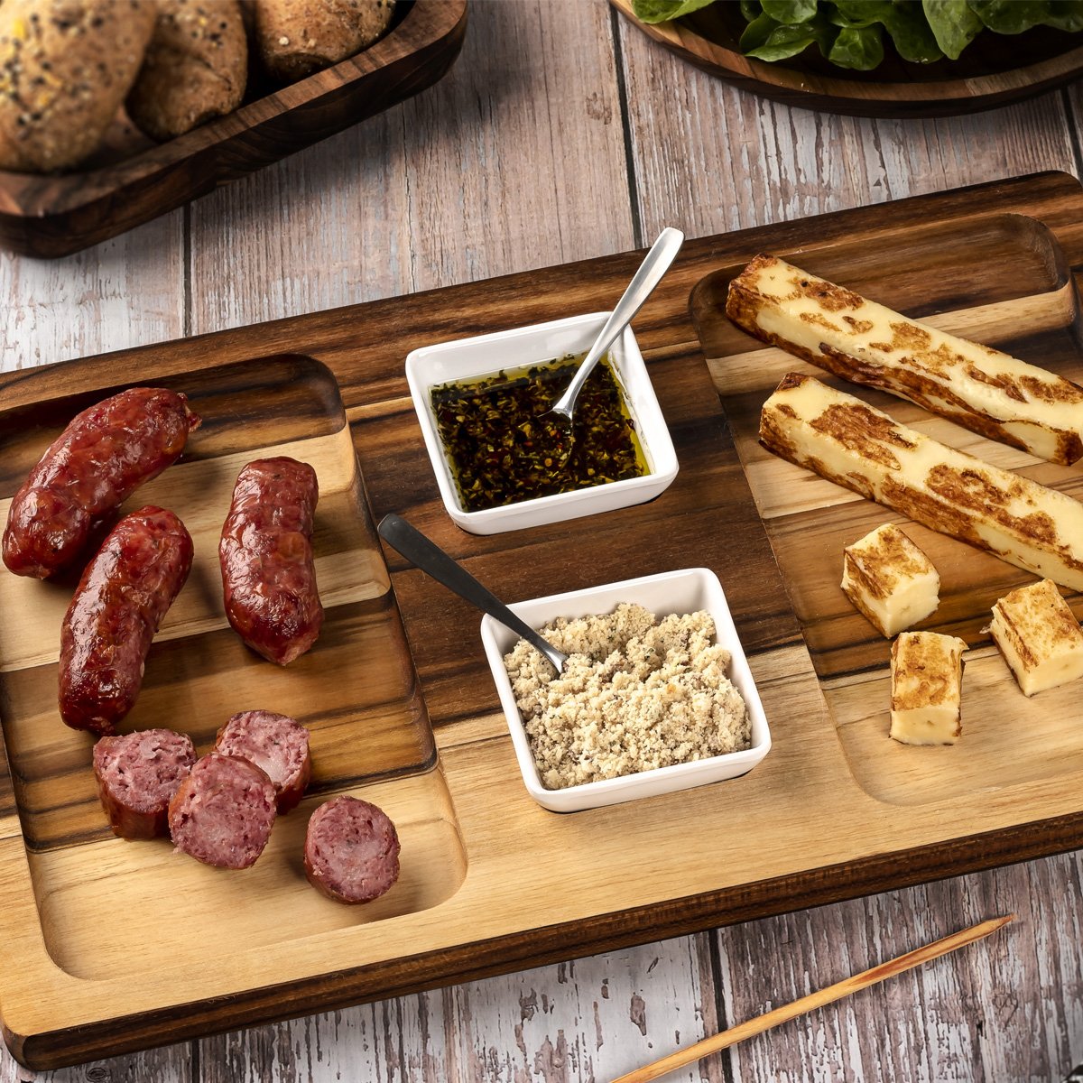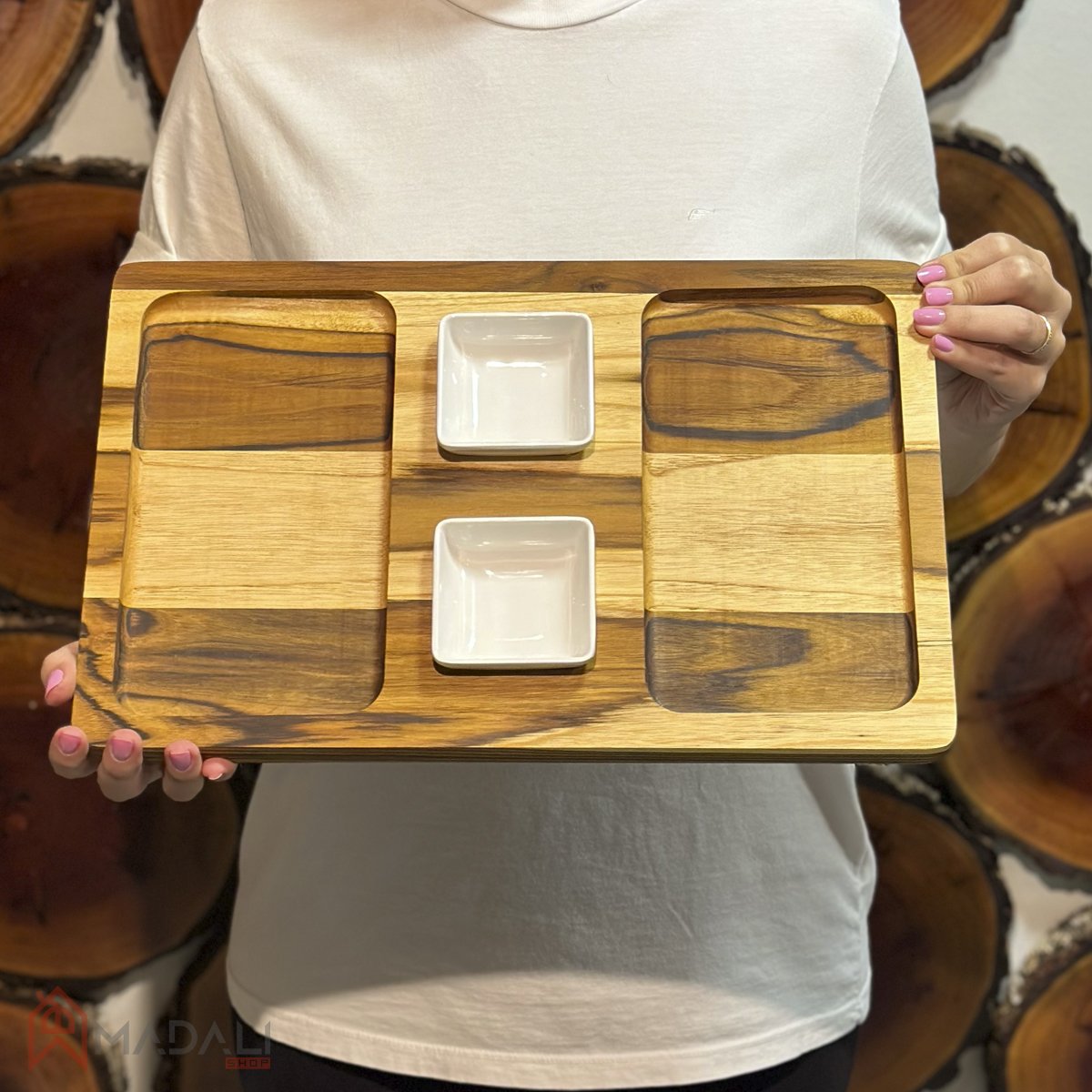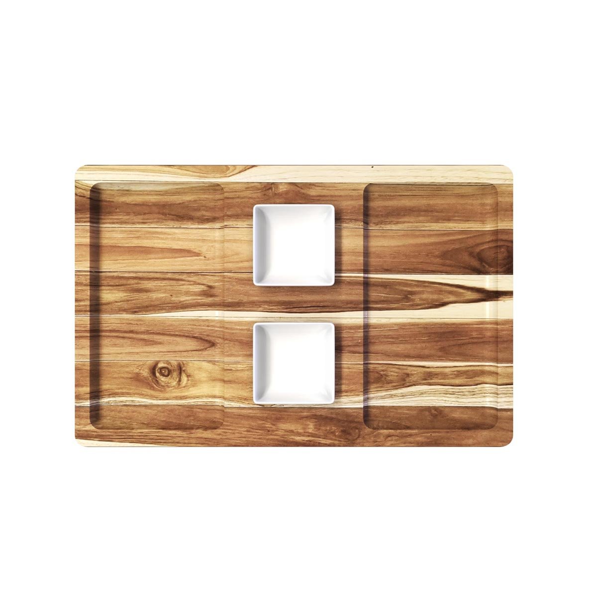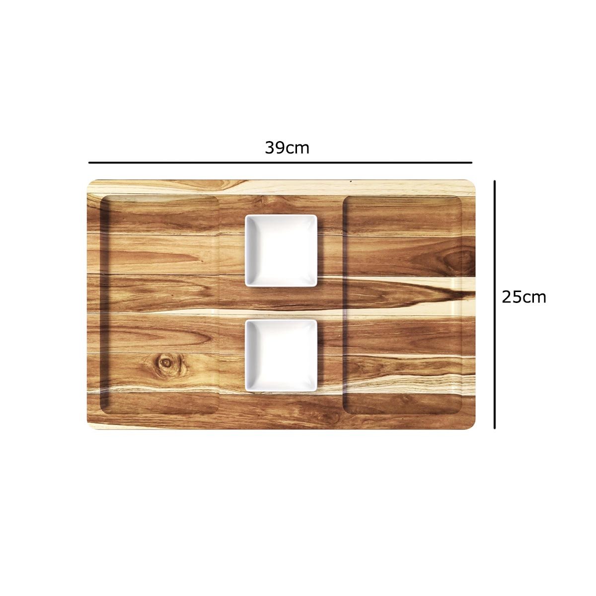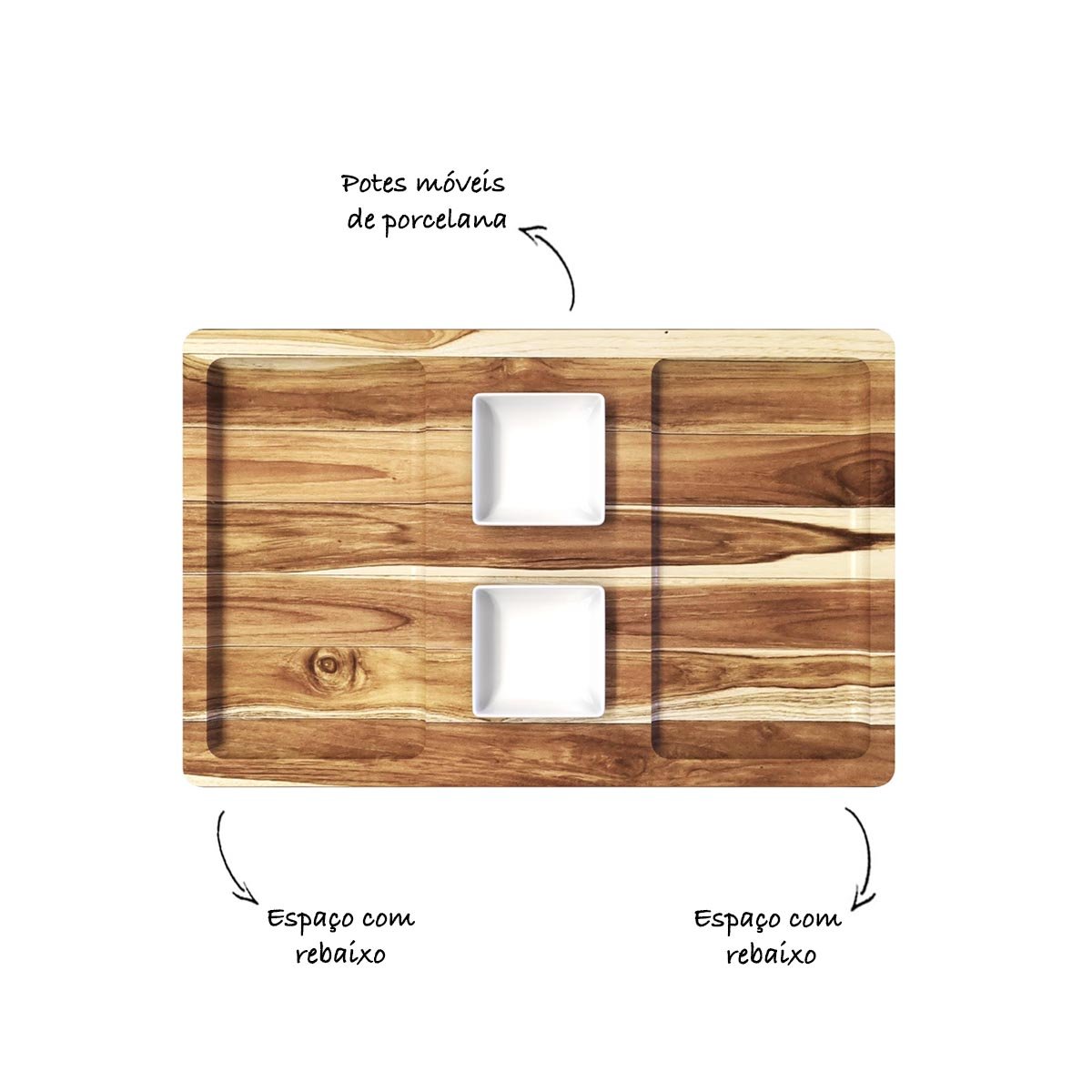 Petisqueira Retangular De Madeira Teca Com 2 Potes - Stolf
