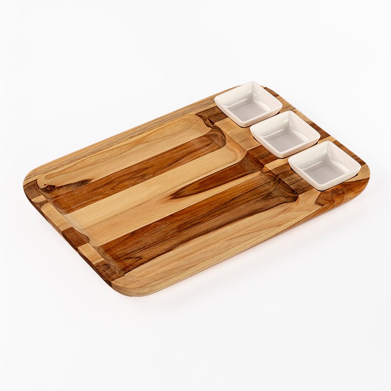 Petisqueira Retangular Em Madeira Com 3 Potes - Stolf