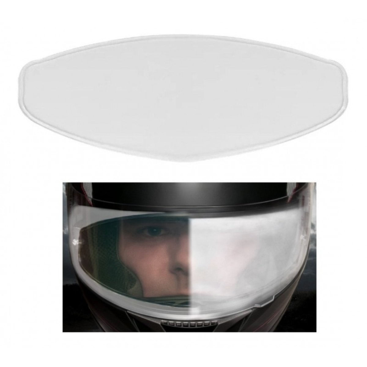Película anti embaçante universal para viseira de capacete Você acha que embaçar sua viseira é um problema? Aqui está mais uma opção o novo anti Fog ! A lente anti embaçante é uma película adesiva universal que inibe a formação de embaçamento na área protegida.. Uma vez que a película está instalada, é praticamente livre de manutenção, ele se encaixa dentro da viseira, por isso é bem protegida contra arranhões e insetos, ele não tem que ser reaplicado Funciona e evita o embaçamento! - Lente adesiva com formato universal servem em viseiras padrão. - Cor transparente. - Fita adesiva é opticamente transparente. - Contém uma película por embalagem Antes de instalar limpar a parte interna da viseira. Após a instalação remover a película de proteção cor amarela.