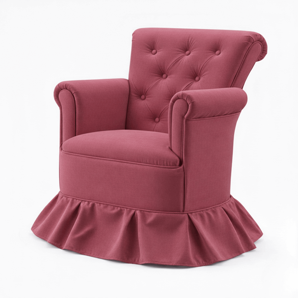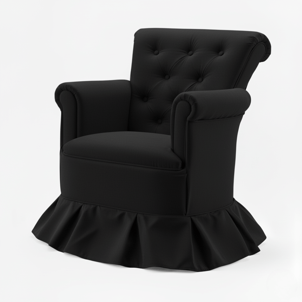 O assento amplo e macio proporciona excelente conforto para o uso diário, enquanto os braços estofados oferecem apoio ergonômico e acolhedor. Sua estrutura firme garante estabilidade e durabilidade, ideal tanto para uso residencial quanto comercial. O detalhe da saia na base confere um toque clássico e elegante, valorizando o acabamento e reforçando o visual sofisticado da peça. Perfeita para salas de estar, quartos, recepções, escritórios, consultórios ou espaços de leitura.