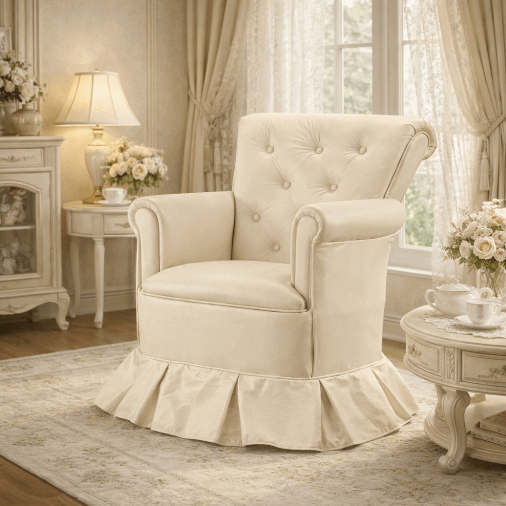 O assento amplo e macio proporciona excelente conforto para o uso diário, enquanto os braços estofados oferecem apoio ergonômico e acolhedor. Sua estrutura firme garante estabilidade e durabilidade, ideal tanto para uso residencial quanto comercial. O detalhe da saia na base confere um toque clássico e elegante, valorizando o acabamento e reforçando o visual sofisticado da peça. Perfeita para salas de estar, quartos, recepções, escritórios, consultórios ou espaços de leitura.