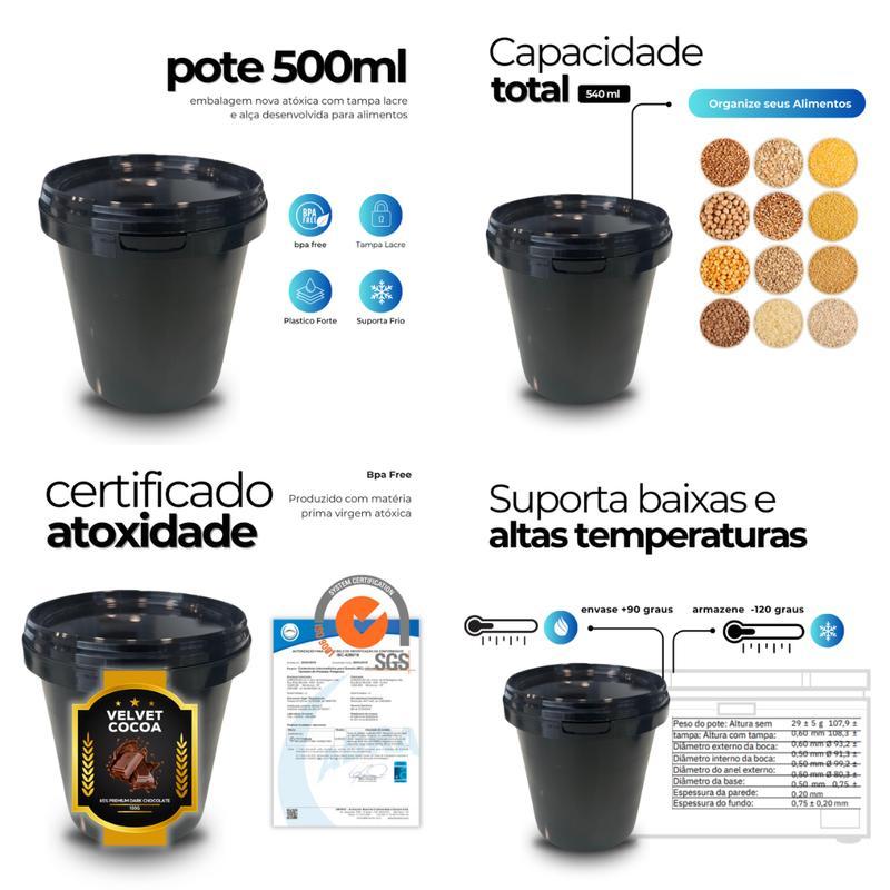 Pote Preto 500ml Com Tampa Lacre Atóxico Bpa Free - Kit Com 250 Peças