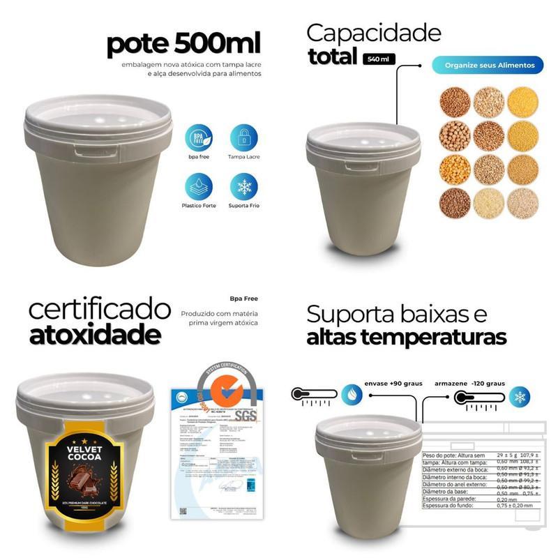 Pote Branco 500ml Com Tampa Lacre Atóxico Bpa Free - Kit Com 100 Peças