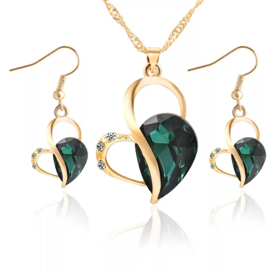 Presente Dia Dos Namorados Conjunto De Colar E Brincos Verde