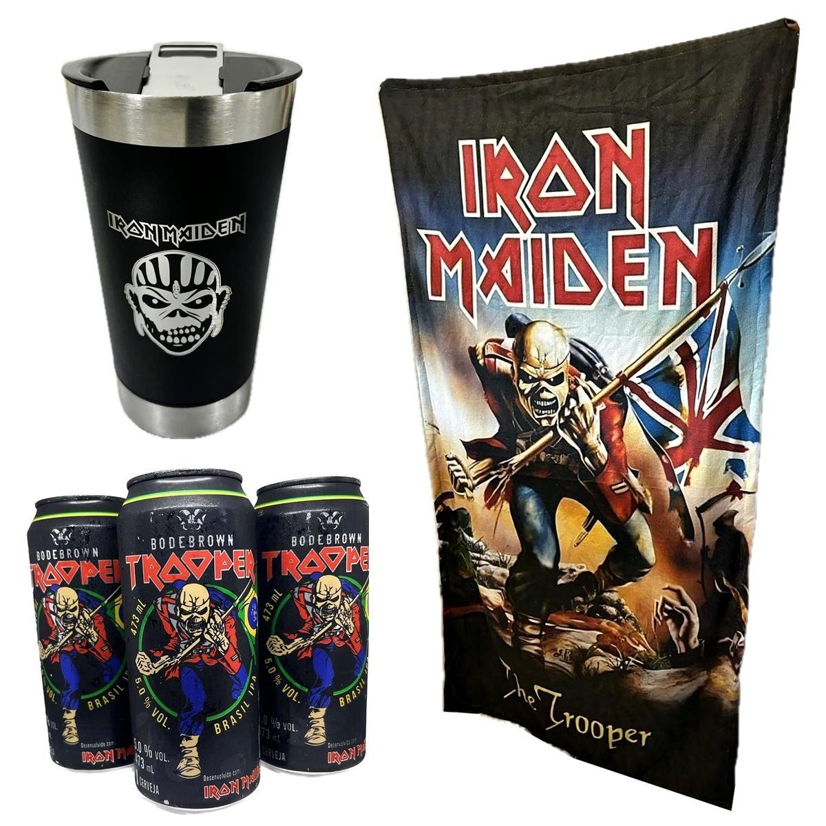 Presente Iron Maiden 3 Cervejas 473ml+ Copo Térmico + Toalha Trooper