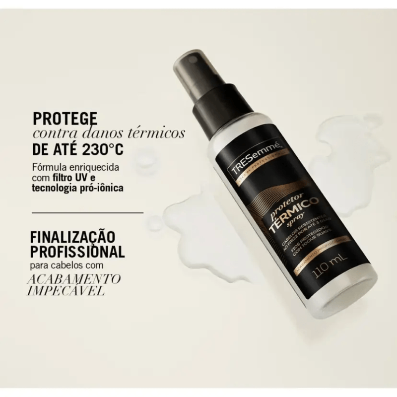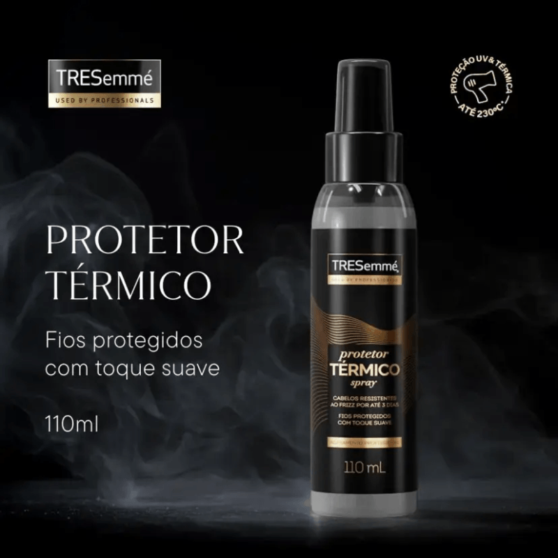 O Protetor Térmico Antifrizz Tresemmé é um produto profissionalmente desenvolvido com Filtro UV e Tecnologia Pró-iônica , protegendo os fios sem pesar.
