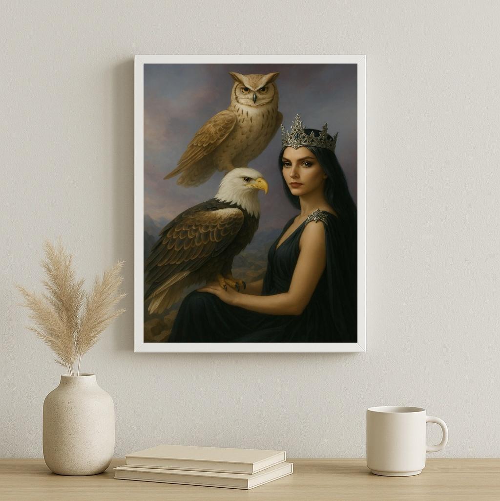 Quadro Arquétipos De Poder - Soberana Águia E Coruja 33x24cm