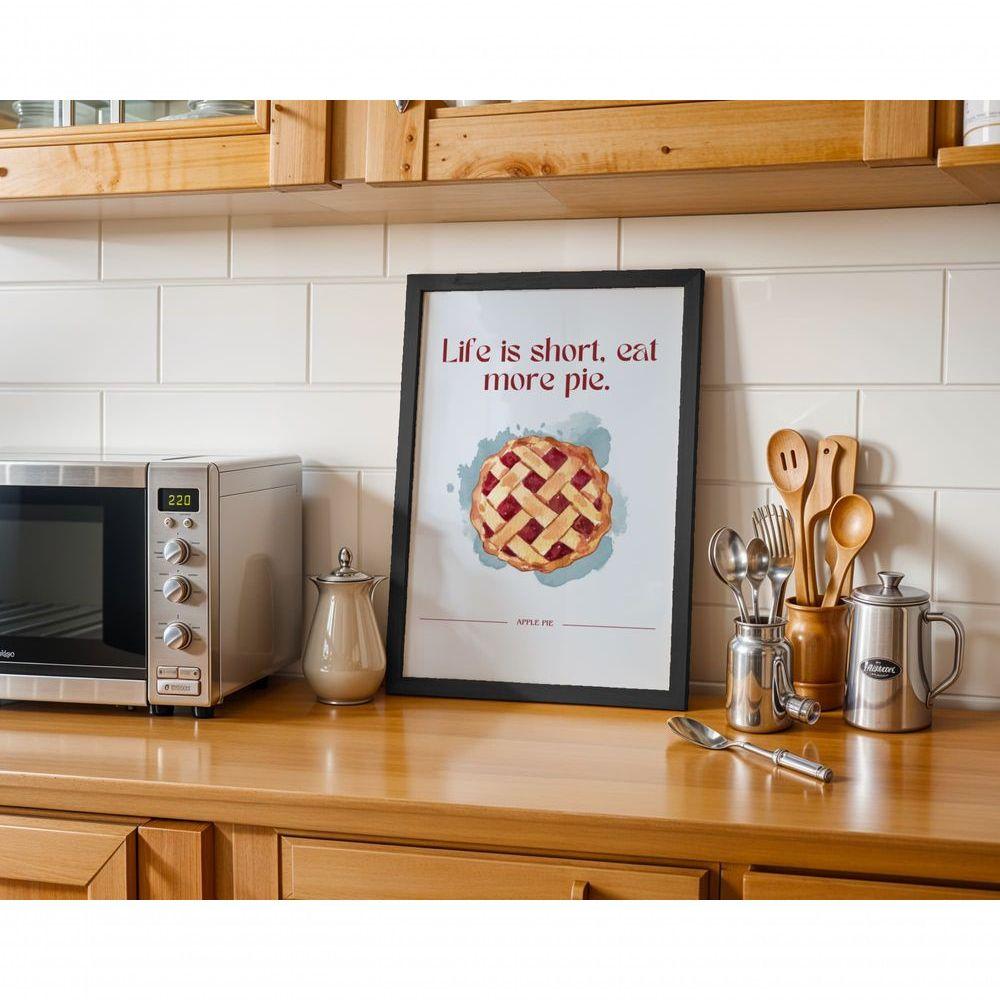 Quadro Decorativo Life Is Short, Eat More Pie Retangular 30x40cm Preto Para Cozinha
