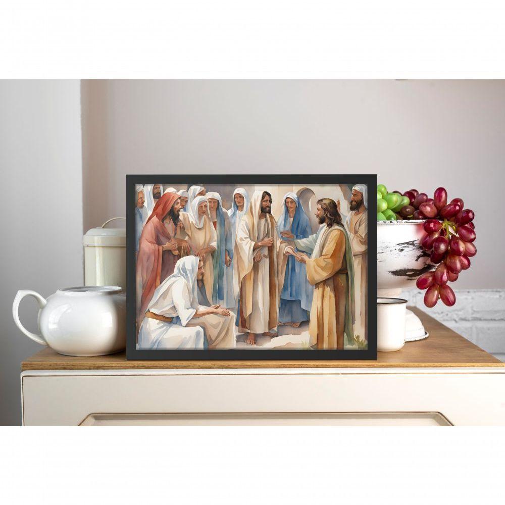 Quadro Religioso O Sermão Da Esperança Retangular 70x50cm Em Madeira Com Vidro Para Parede