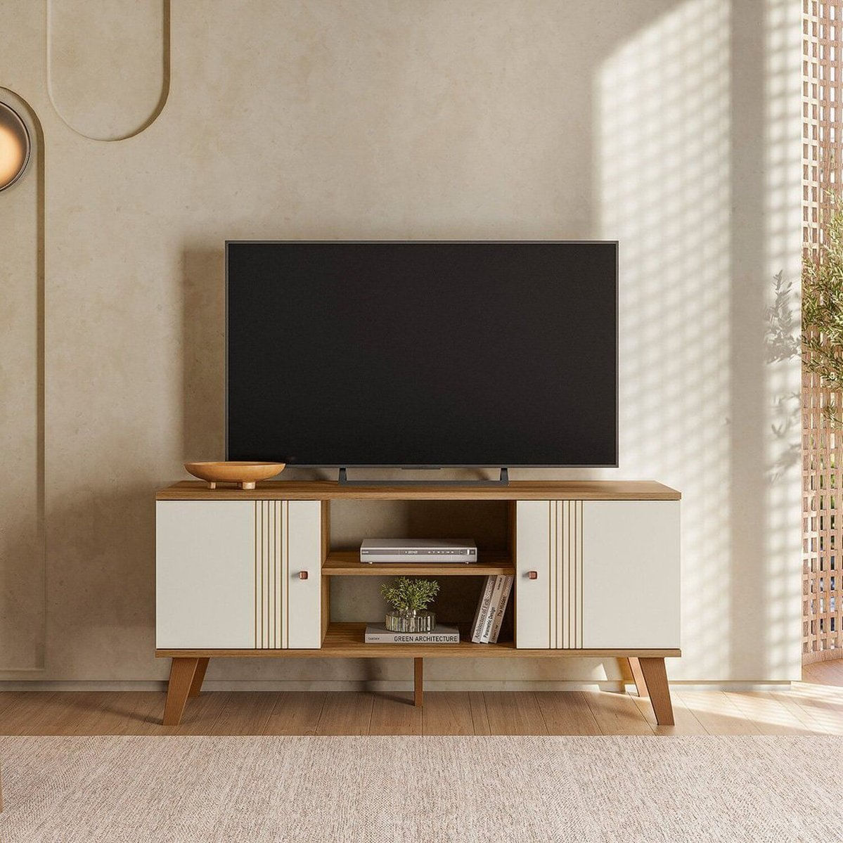 Rack Denver 115cm Pata Tv Até 50 Polegadas Com Duas Portas Nature/off White