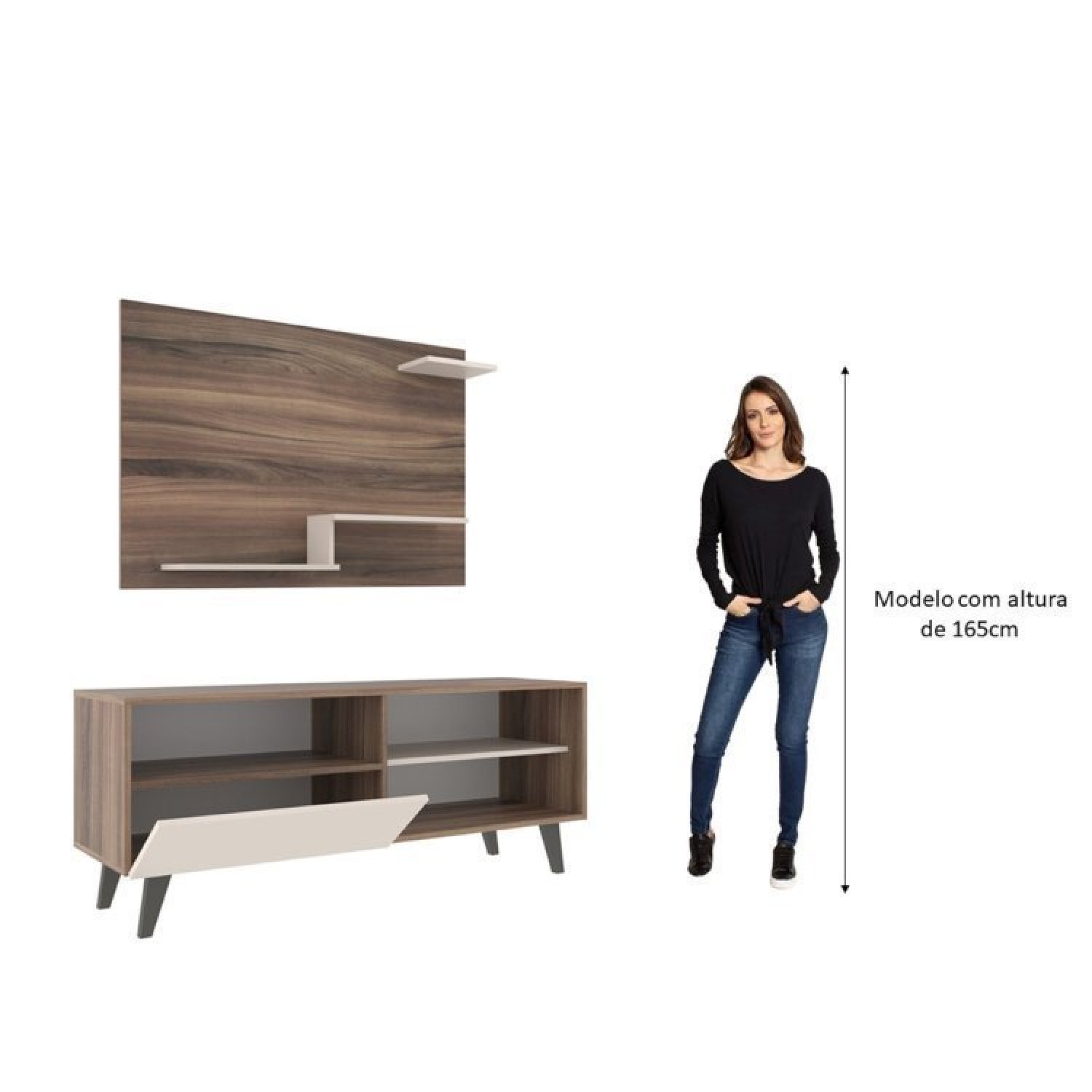 Rack Com Painel Retrô Para Tv Até 42 Polegadas 136cmx144cm Detroit Denver Nogueira.