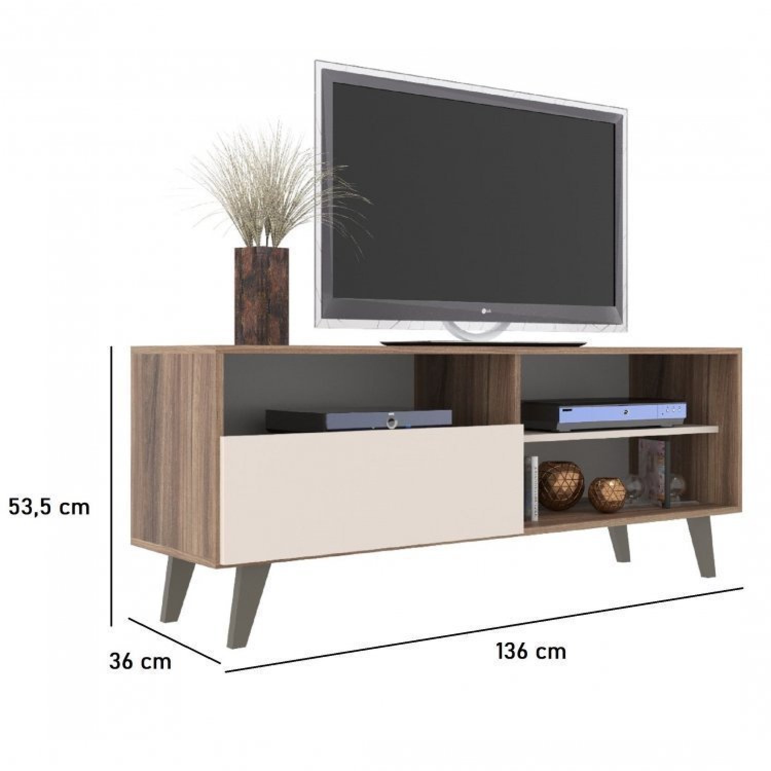 Rack Detroit Com Pés Retro, Tem Sua Altura De 53,5 Cm, Comprimento De 136 Cm E Profundidade De36 Cm, Pesa 22,05 Kg, Este Móvel É Exclusivo Para Salas, Mas Pode Ser Utilizado Em Outros Ambientes, Tem Uma Porta Basculante.