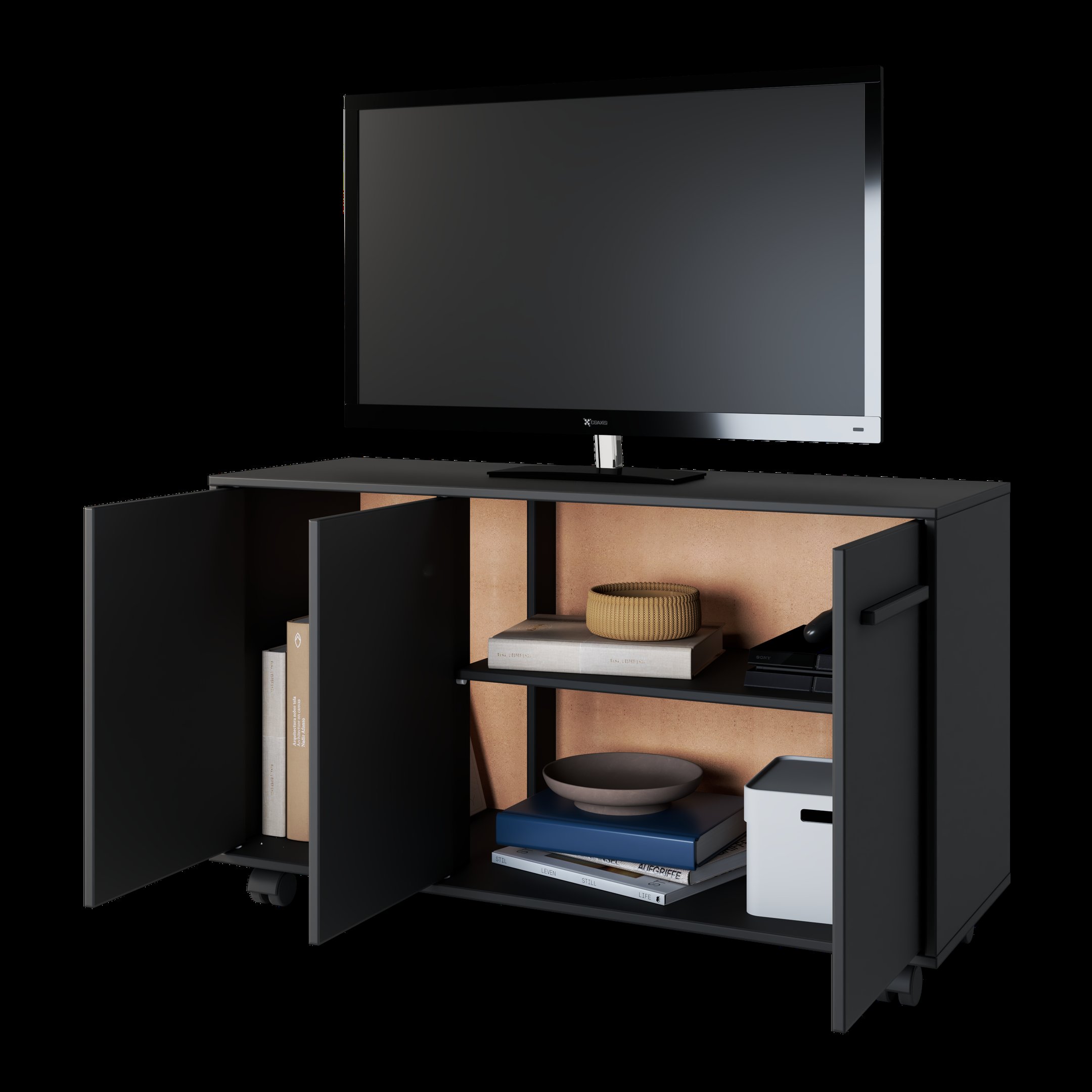 Rack Para Tvs Até 40 Polegadas Em Mdp 3 Portas 1 Prateleira Preto