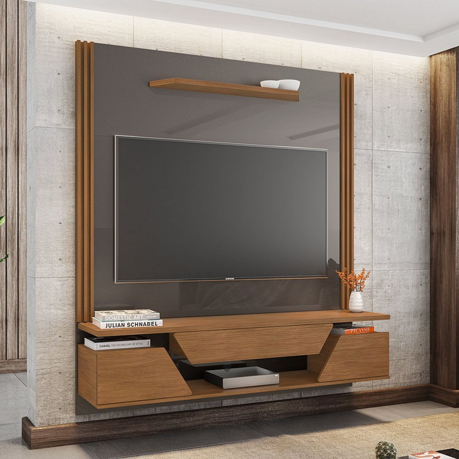 Rack Suspenso Para Tv Até 60 Polegadas 160cm 2 Portas 1 Gaveta Valley Cinza Perola/cedro.