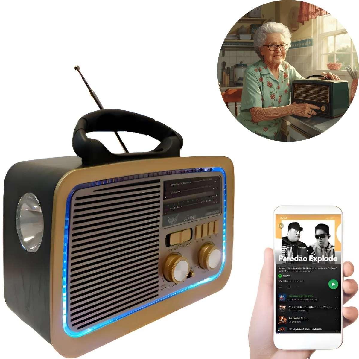 Rádio Retrô Portátil Com Luz Led Presente Natal