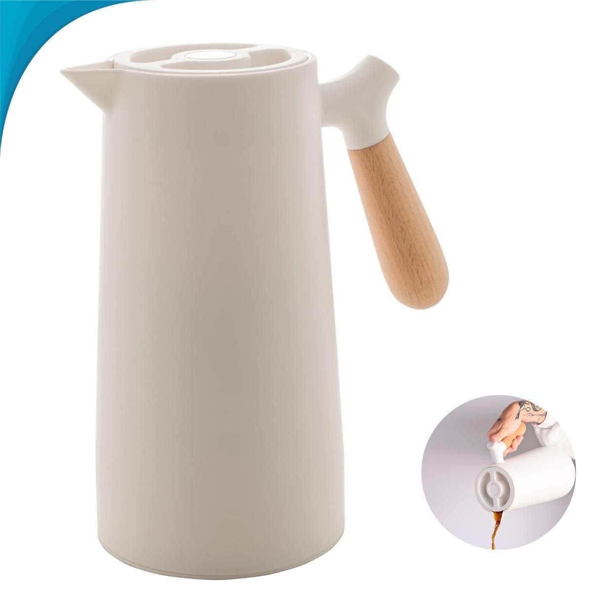 01 Garrafa Térmica 1l Com Cabo De Madeira