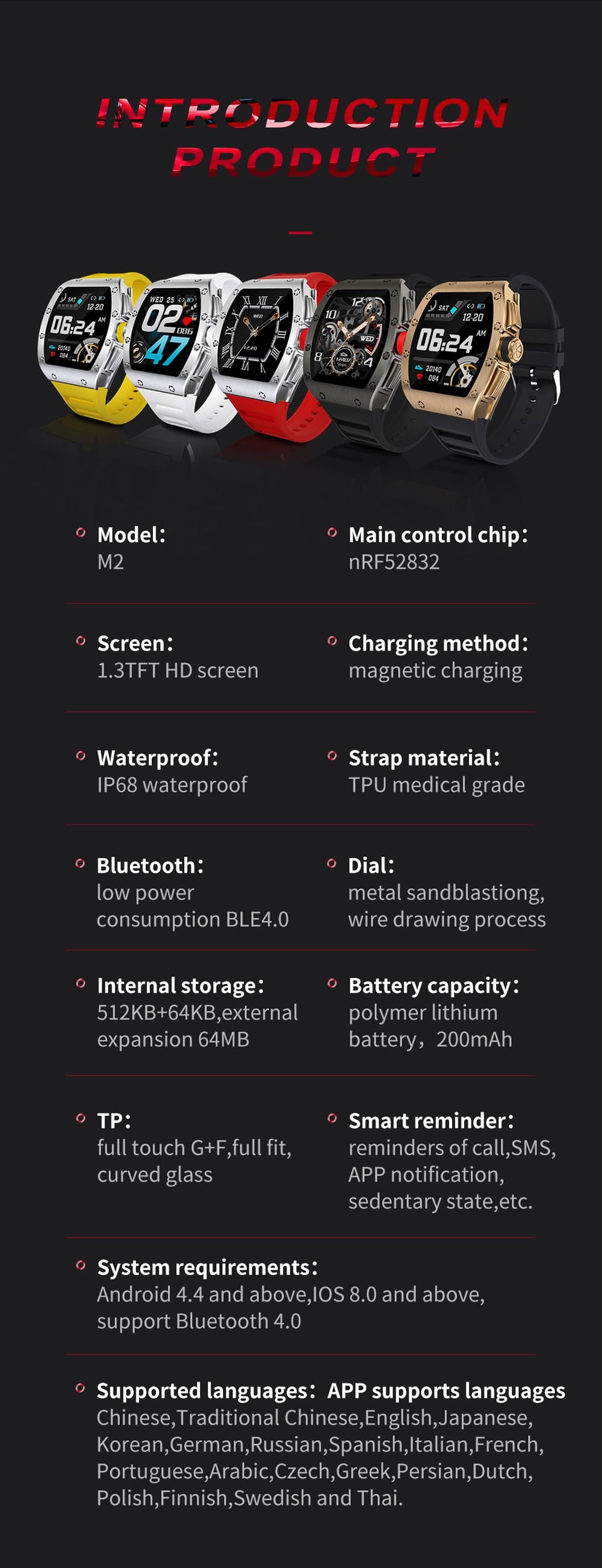 relógio Inteligente Masculino Smartch Nrf52832 À Prova D'água