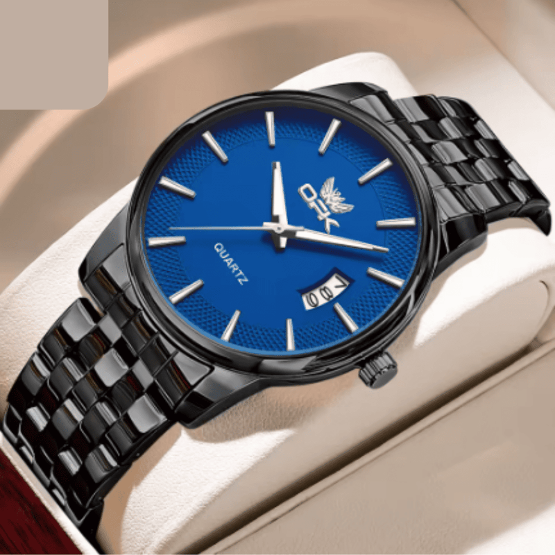 O Relógio Ofk com Calendário é a peça ideal para o homem moderno que busca um acessório que une a sofisticação atemporal do design clássico com a confiabilidade da engenharia de precisão. Este modelo se destaca por seu acabamento em preto de alto brilho ou aço escuro (gunmetal), conferindo uma estética executiva e marcante.