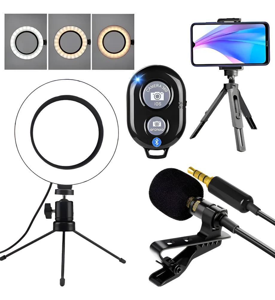 Ring Light Bluetooth Microfone Lapela Suporte Celular Mesa P