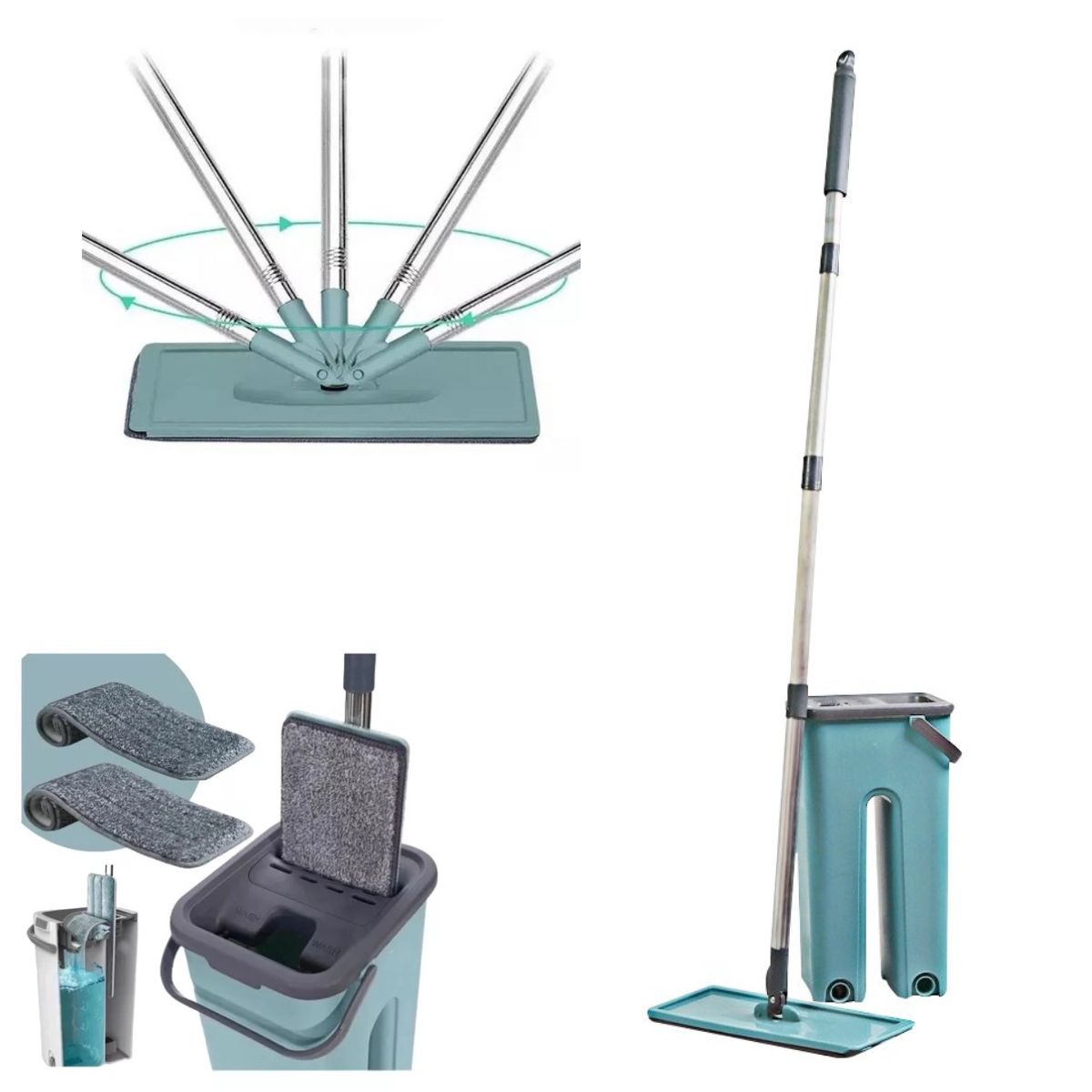 Mantenha Seus Pisos Impecáveis Com O Conjunto Prático E Eficiente Do Rodo Flat Mop E Balde Lava E Seca Profissional.