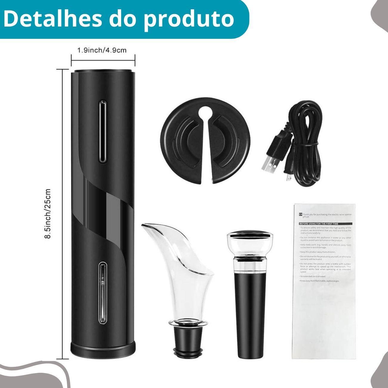 Motor Potente, Recarregável Por Usb, Design Moderno E Pegada Confortável. O Led Indica Funcionamento E Deixa A Experiência Mais Premium. Compatível Com Qualquer Garrafa De Vinho Padrão.