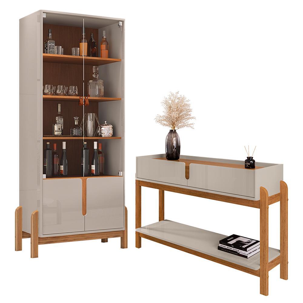 Sala De Jantar Lizz Com Cristaleira E Aparador Cinza Pérola/cedro - Casa D