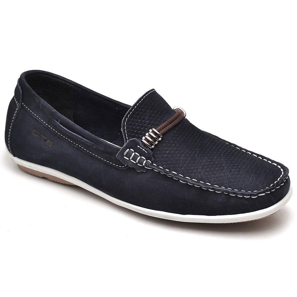 Sapato Mocassim Masculino Couro Perfuros Confortável Casual Azul 38