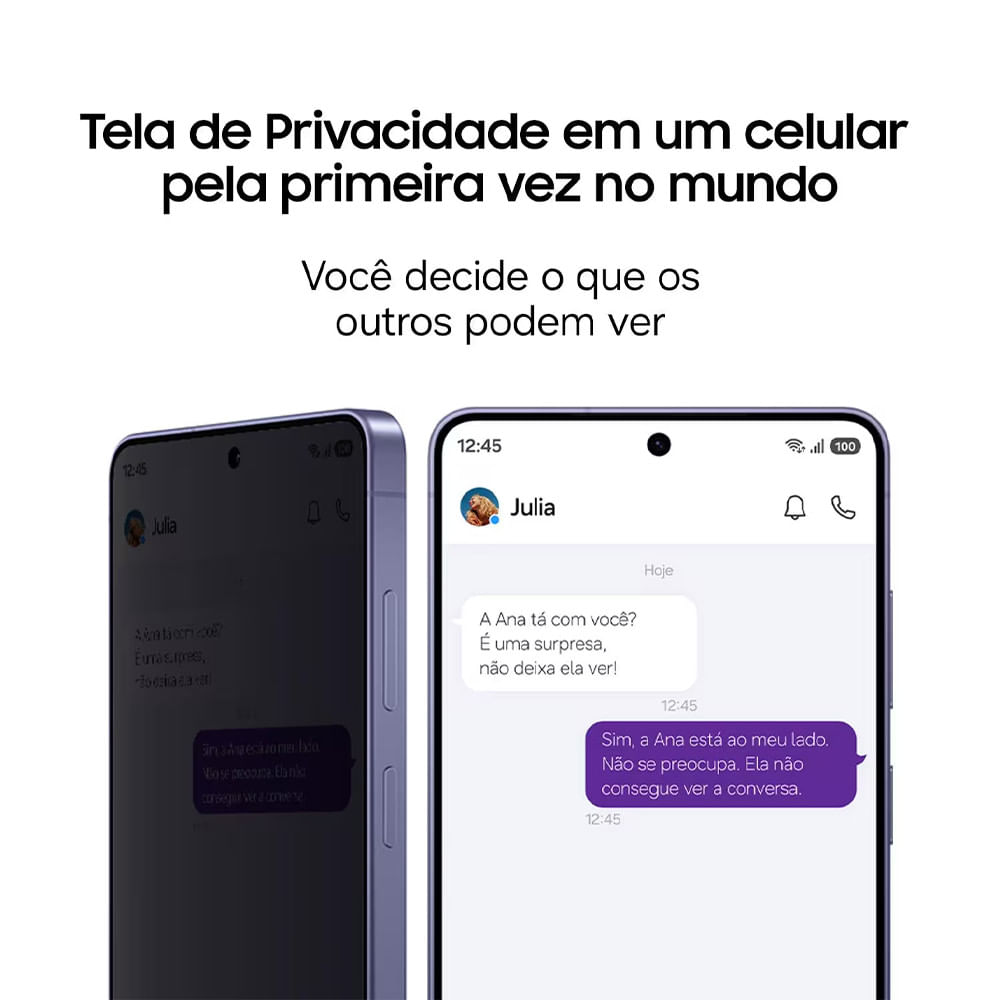 O Galaxy S26 Ultra traz ainda tela de privacidade integrada, oferecendo mais segurança no uso diário. Acompanha S Pen, ampliando sua produtividade e criatividade com escrita precisa e comandos inteligentes. Com Android 16 e conectividade 5G, você navega com máxima fluidez. Conta ainda com Bluetooth, Wi-fi Generation, NFC, Samsung Pay, função roteador Wi-fi e Dual SIM Nano-SIM (4FF) + eSIM.