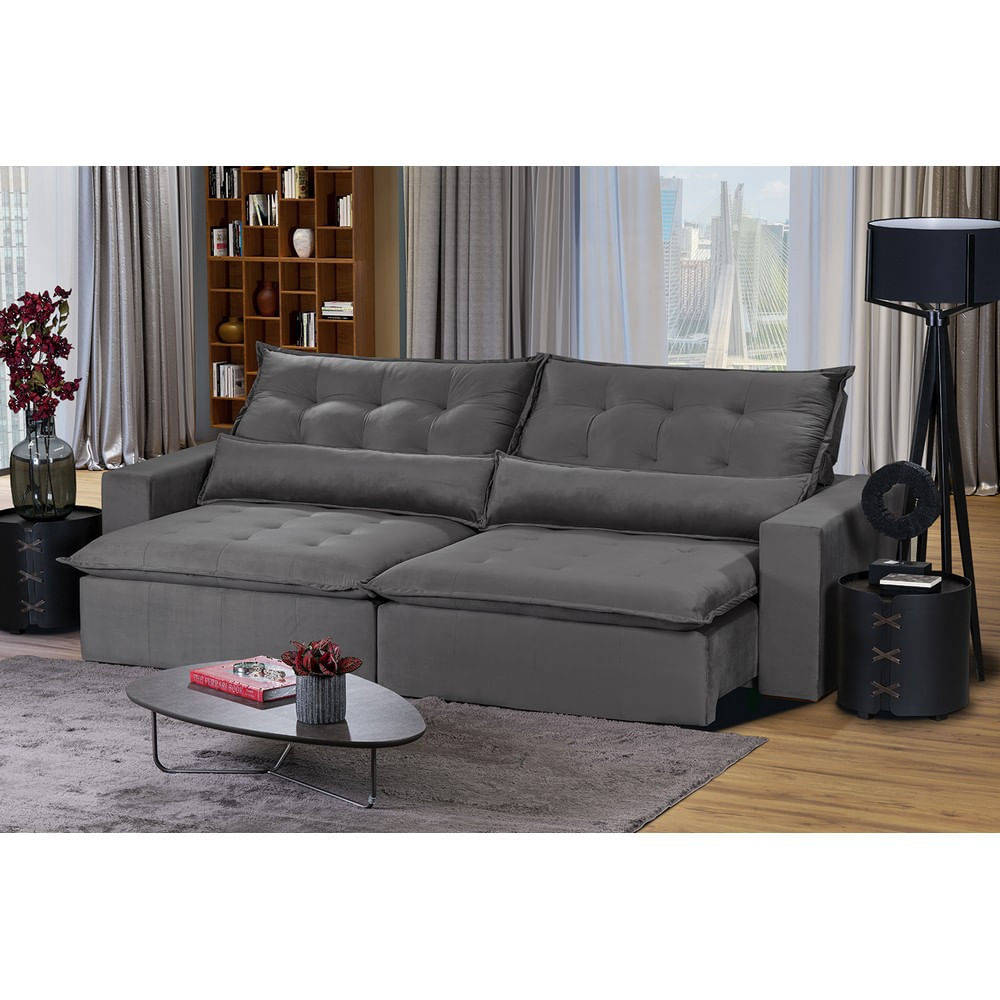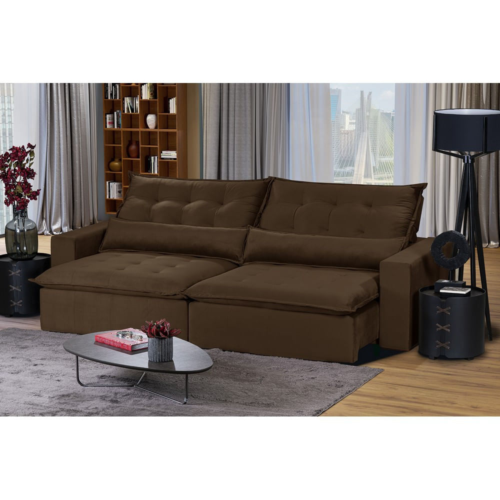 Sofá Bahia Modular 6 Lugares 2,90mt Com Molas Retrátil E Reclinável Veludo Nobre Sofatec