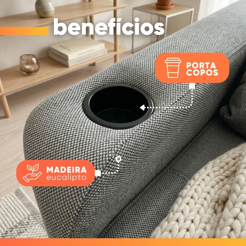 - Tecido do Sofá: Revestido em Tecido Napoli, unindo a elegância e o toque aconchegante que facilita a limpeza e aumenta a durabilidade
