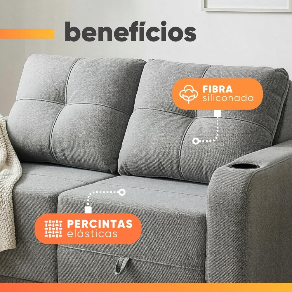 - Modelo: Sofá Cama 2 Lugares 1,47m com Porta Copo e Almofadas Kate