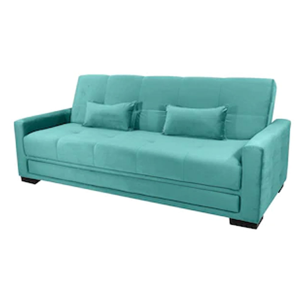 Feito com madeira de reflorestamento de alta qualidade, ele conta com visual de sofá, mas que se transforma em cama quando necessário, basta reclinar seu encosto. A sua estrutura foi projetada para acomodar até três pessoas como sofá e duas como cama. E mais, ele vem acompanhado de duas almofadas.