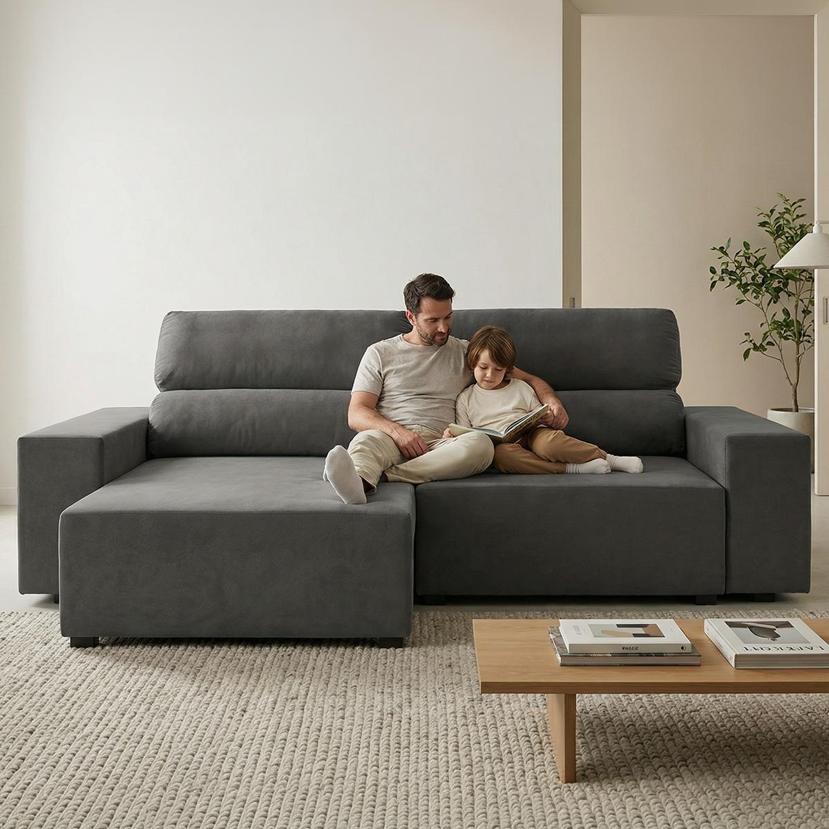 Seu mecanismo retrátil e reclinável com abertura prática facilita o uso no dia a dia, enquanto o assento em espuma e o encosto com 5 posições ajudam a encontrar a posição ideal para relaxar. Com estrutura em madeira de eucalipto e acabamento em veludo, o Ingleses oferece conforto equilibrado, sem ser macio demais nem excessivamente firme, visual atual e ótimo custo-benefício para compor a sala com mais praticidade.