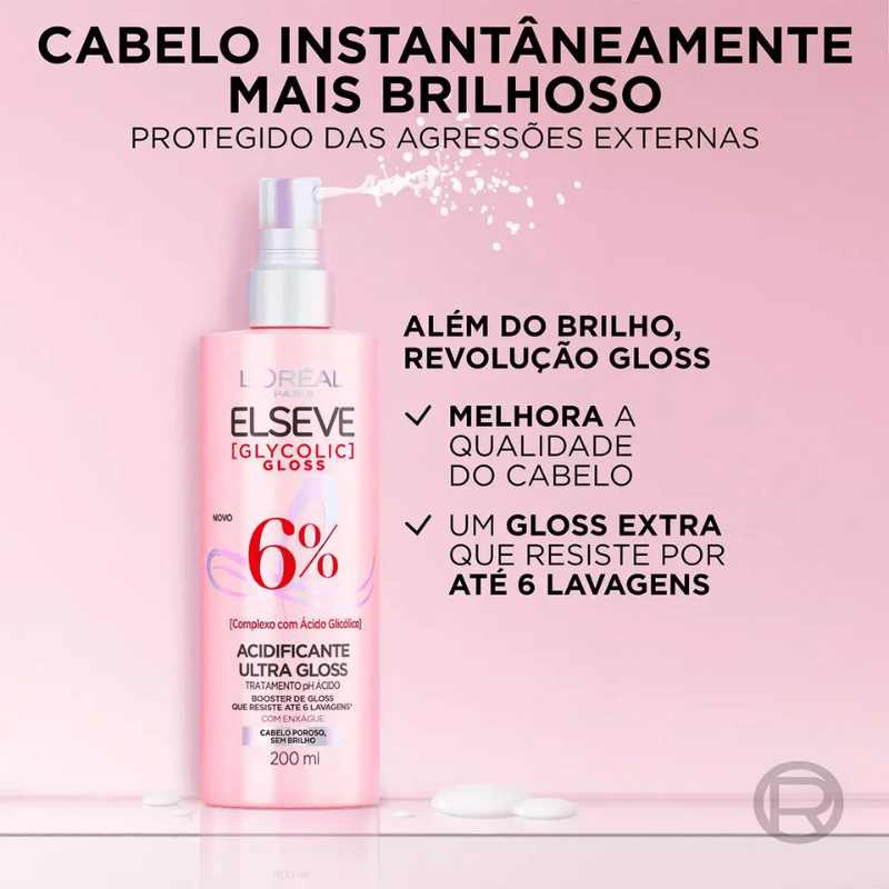 O spray Acidificante Elseve Glycolic Gloss 200ml É Um Spray Desenvolvido Para Proporcionar Brilho Intenso E Maciez Aos Fios, Equilibrando O Ph Do Cabelo E Deixando-os Com Um Aspecto Saudável E Radiante. Sua Fórmula Com Ácido Glicólico Ajuda A Fechar As Cutículas Do Cabelo, Proporcionando Um Acabamento Liso E Brilhante, Ideal Para Cabelos Danificados Ou Sem Vida.