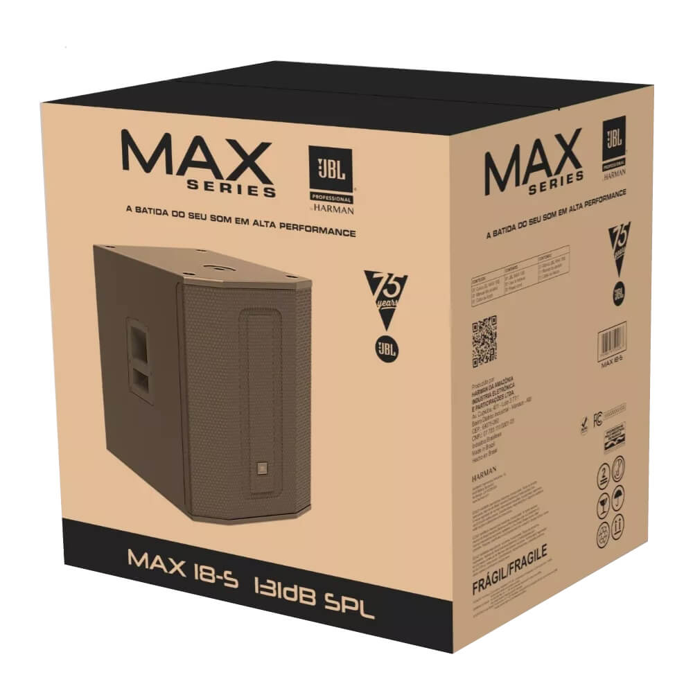 | Itens Inclusos | Subwoofer JBL MAX 18-S Ativo 18 Polegadas 500W RMS |