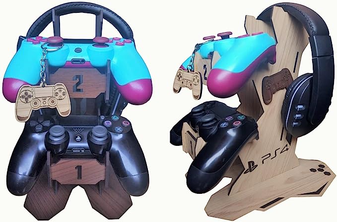 Descrição: O Suporte Foi Desenvolvido E Gravado A Laser Em Alta Resolução Para Acomodar Com Perfeição 2 Controles De Ps4, Ps3, Xbox, Xbox One Dentre Outros + 1 Headset, De Forma A Organizar Seu Setup, Deixando Seu Ambiente Organizado E Muito Bem Decorado.