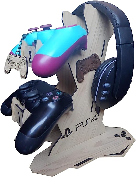 Descrição: O Suporte Foi Desenvolvido E Gravado A Laser Em Alta Resolução Para Acomodar Com Perfeição 2 Controles De Ps4, Ps3, Xbox, Xbox One Dentre Outros + 1 Headset, De Forma A Organizar Seu Setup, Deixando Seu Ambiente Organizado E Muito Bem Decorado.