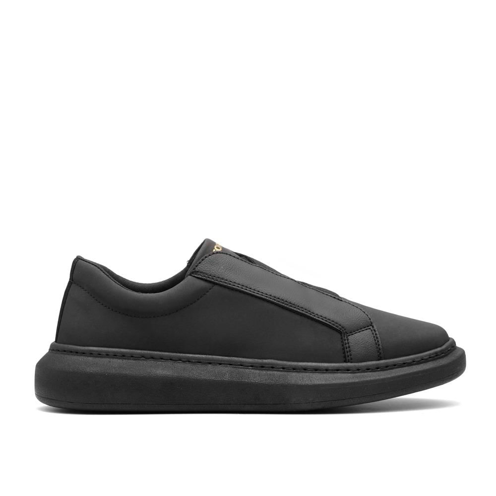 Tênis Casual Masculino Slip On Conforto Liso Dia A Dia Preto 44