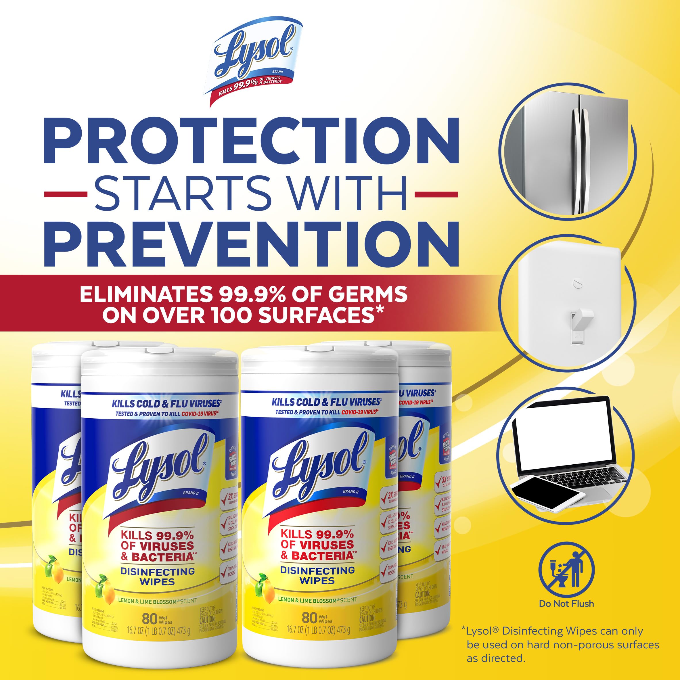 Toalhetes Desinfetantes Lysol Multi-surface Lemon, Pacote Com 4