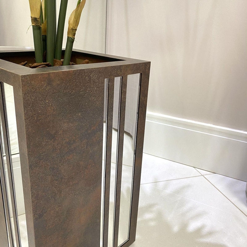 Vaso Decorativo Retangular Pitsburgo Ddekcor 61Cm..Os vasos são peças importantes na decoração, trazendo harmonia e alegria aos ambientes residências e comerciais..Nossos vasos possuem design, cores e combinações que realçam ainda mais qualquer ambiente, combinando bom gosto criatividade e sofisticação...Especificações técnicas.Largura: 35,00 cm.Profundidade: 35,00 cm.Altura: 61,00 cm.Boca: 26 cm.Base: 35,00 cm.Litros: 74,00 .Peso: 6,5 kg.Cor: marron ct, com detalhes em espelho acrílico.Material: mdf de primeira qualidade..Detalhes: espelho acrílico.Garantia: 3 meses contra defeito de fabricação..Limpeza: utilizar um pano macio(flanela) levemente umedecido com água ou lustra móveis .Marca: creatus..Ambientes.-- hall de entrada.O hall de entrada, certamente combina e necessita da presença de um vaso para enriquecer e requintar o ambiente, pois será o primeiro local a impressionar os amigos e visitantes...-- sala.A sala com certeza é um dos locais em que o vaso harmoniza com elegância. Pois torna o ambiente mais aconchegante...-- empresas.Os vasos também tem a função de alegrar ambientes empresariais, pois deixam o ambiente mais leve e suave...-- entradas de condominios.Nas entradas de condomínios prediais e condomínios horizontais, os vasos além de beleza, deixa uma impressão de ambiente acolhedor e organizado...-- salões de beleza.O mesmo podemos dizer para salões de beleza, onde uma decoração exemplar e um belo vaso pode ser o diferencial para atrair mais clientes e deixá-los aconchegados. ..Embalagem.Nossos vaso são muito bem embalados, fazendo com que os riscos no transporte sejam reduzidos a quase nada. Caso acontecer um eventual dano no transporte, fazemos a reposição sem custo...Observação.A planta constante no anúncio tem caráter ilustrativo e não acompanha o vaso..Uso exclusivo para plantas artificiais. marca:Creatus