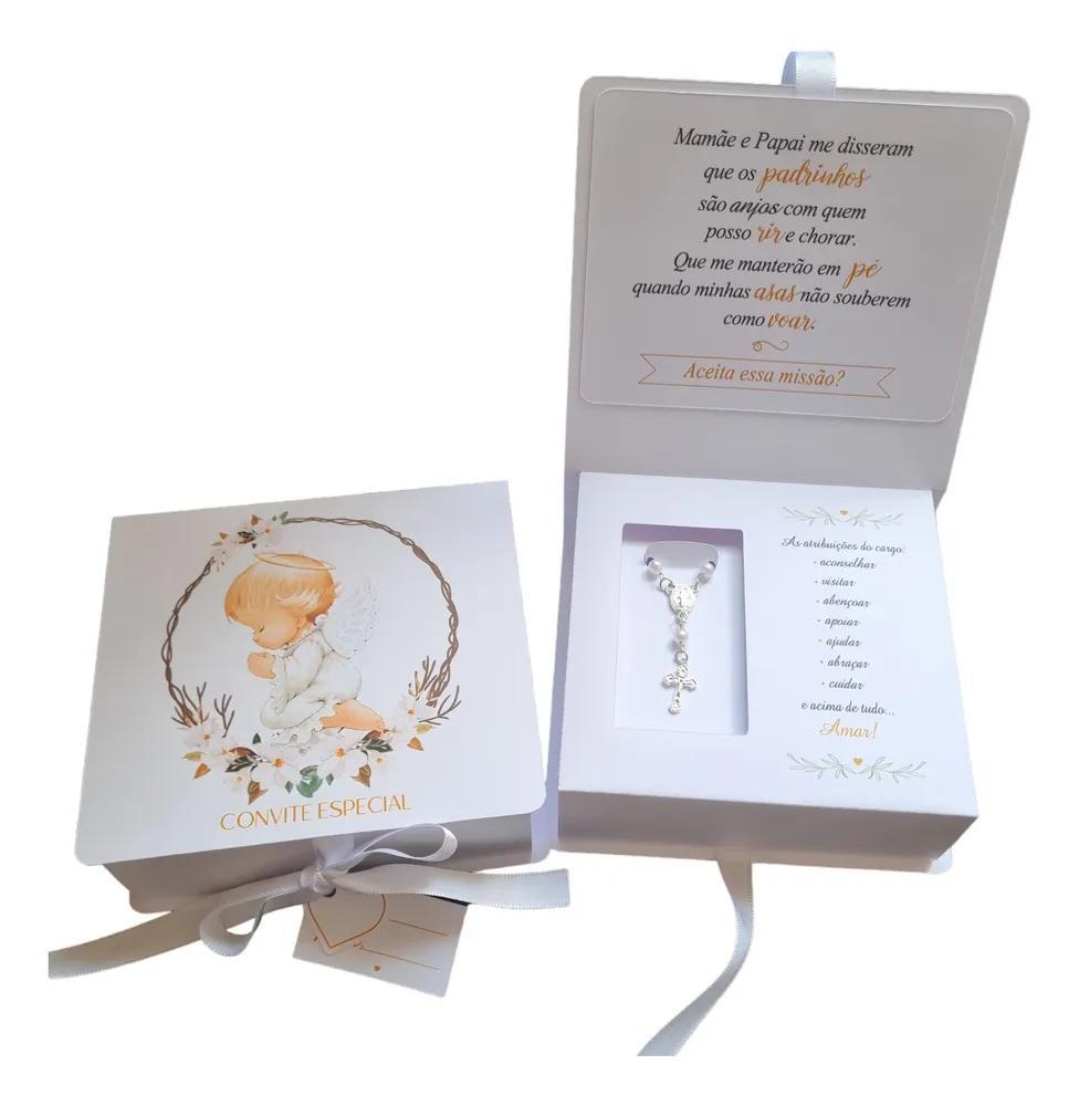 2x Caixa Papel Convite Padrinhos Batizado / Batismo E Tercin