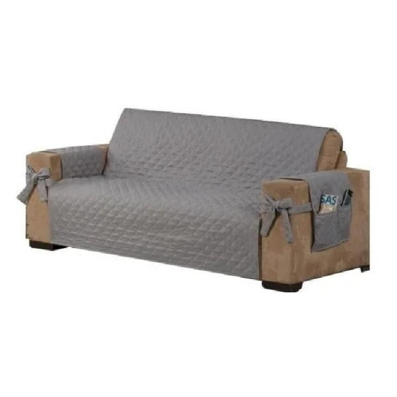 Protetor De Sofá 3 Lugares Laço E Porta Controle Cinza