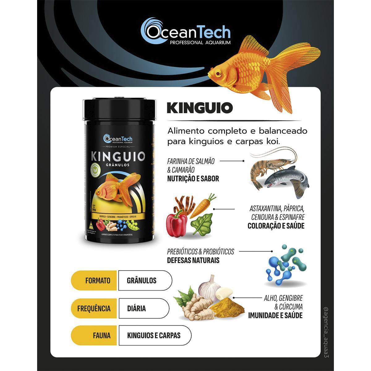 A Ração Oceantech Kinguio Gran É Um Alimento Completo E Balanceado, Ideal Para Kinguios, Carpas Koi E Outros Peixes De Água Doce. Com Alta Palatabilidade, Sua Fórmula É Rica Em Proteínas De Qualidade, Como Farinha De Salmão E Camarão, Além De Ingredientes Funcionais Como Spirulina, Gengibre, Alho, Cúrcuma E Páprica, Que Fortalecem O Sistema Imunológico, Promovem Saúde Intestinal E Realçam Naturalmente As Cores Dos Peixes.